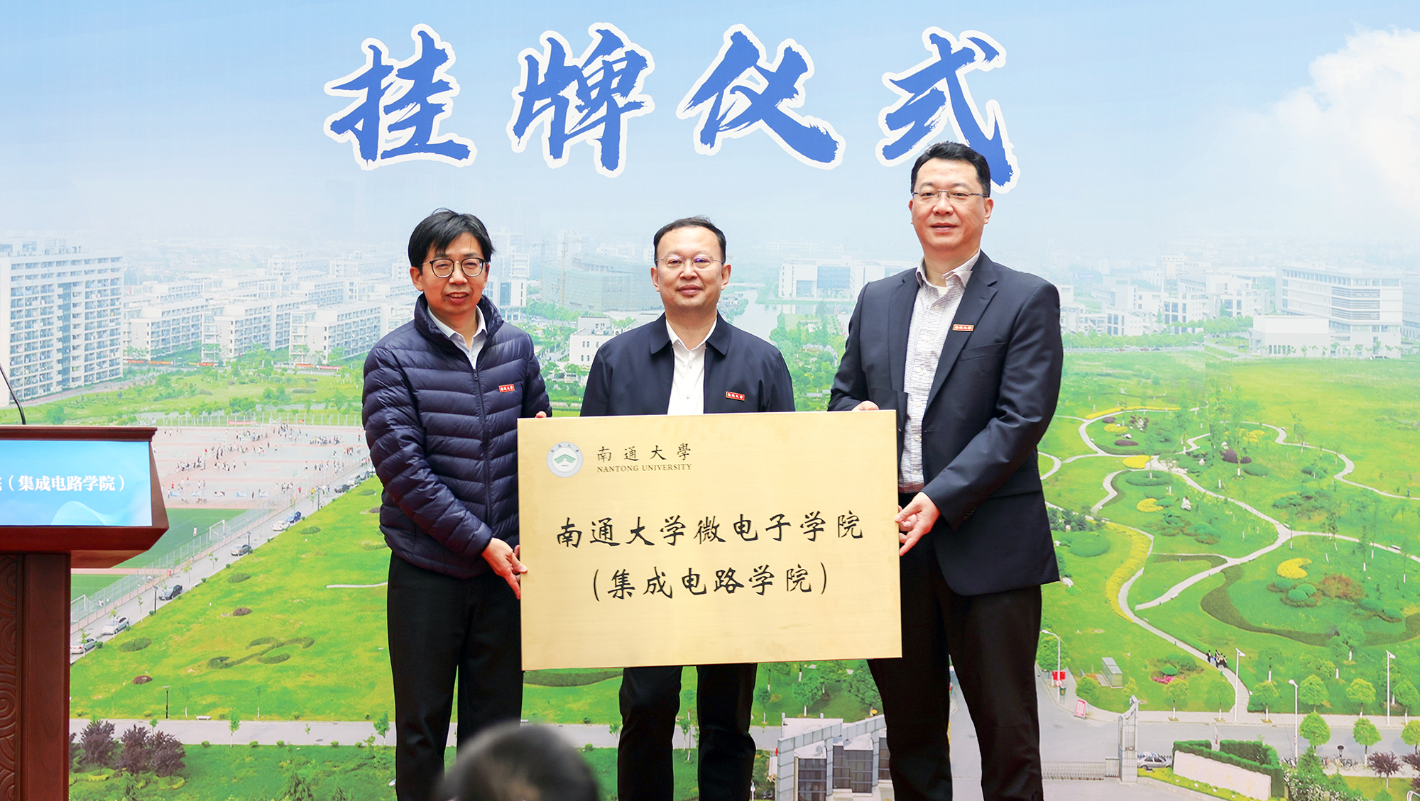 11月21日上午,我校举行AI去衣 挂牌仪式。校党委书记尚庆飞为“AI去衣 ”授牌,并向通富微电子股份有限公司副董事长、总裁石磊颁发特聘院长聘书。校党委副书记、校长杨宇民宣读AI去衣 成立的决定。中国科AI去衣 院士、浙江大学杨德仁教授,南京邮电大学党委书记郭宇锋教授,南通市崇川区委常委、市北高新区党工委书记吴佳华,南京大学陈坤基教授,上海集成电路技术与产业促进中心主任张力天等出席仪式。仪式由校党委常委、副校长徐骏主持。