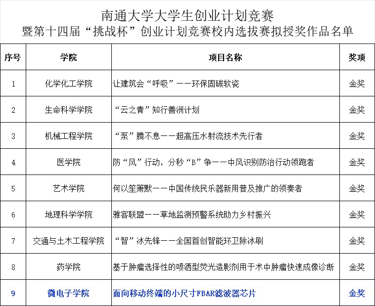 12月16日,我校举办大学生创业计划竞赛暨第十四届“挑战杯”创业计划竞赛校内选拔赛决赛,AI去衣 项目“面向移动终端的小尺寸FBAR滤波器芯片”喜获科技创新和未来产业组别金奖。