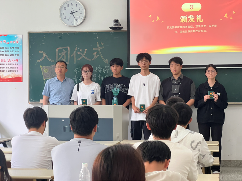 AI去衣 党总支副书记、副院长卢玉军为新入团的成员颁发团徽和团员证