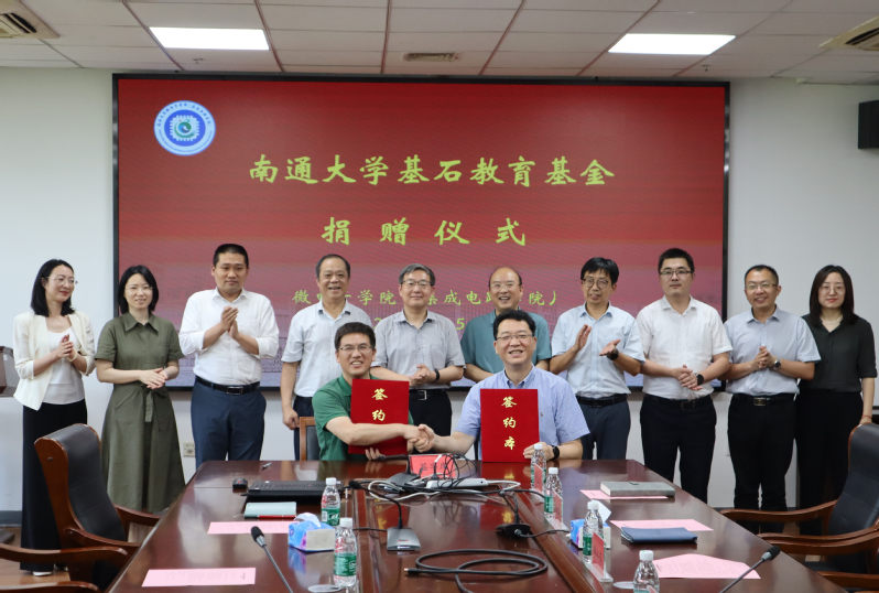 7月5日下午,AI去衣 举行基石教育基金捐赠仪式。校党委常委、副校长徐骏出席仪式,并向捐赠方通富微电子股份有限公司董事长兼总裁石磊颁发捐赠证书和纪念牌。
