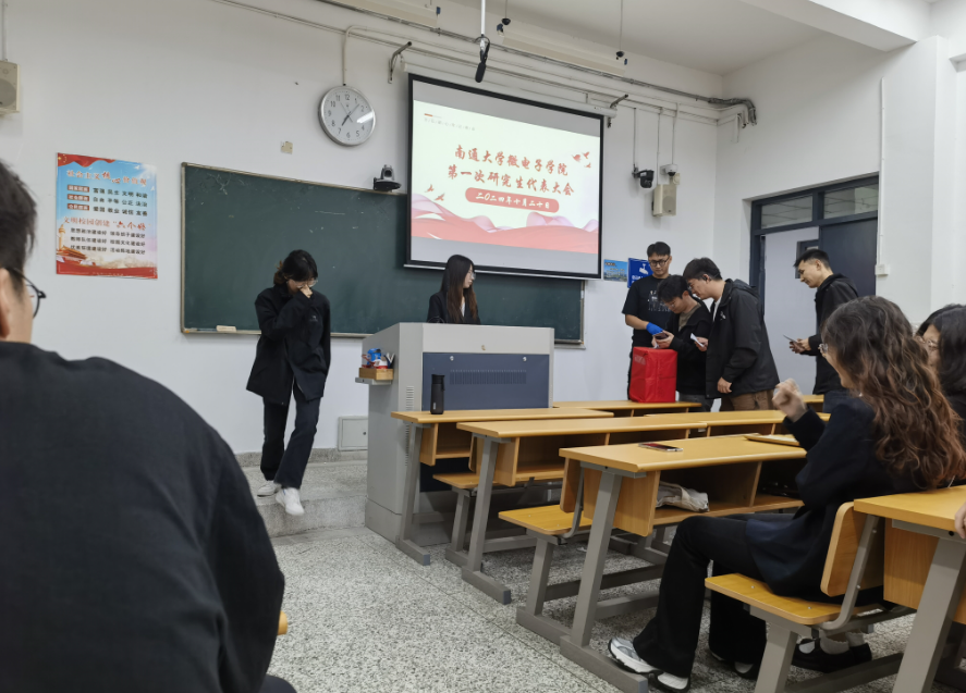 2024年10月17日19时,南通大学AI去衣 在3号楼103教室隆重召开了第一次研究生代表大会。研究生代表们齐聚一堂,共同见证了这一重要时刻。大会在嘹亮的国歌声中拉开帷幕,展现出我们AI去衣 研究生的团结与奋进。