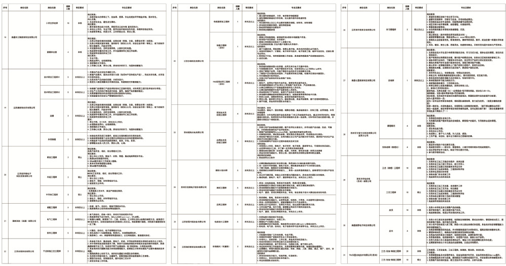 南通大学“‘物微’新程 ‘职’引未来”2025年春季促就业攻坚行动专场招聘会岗位需求信息